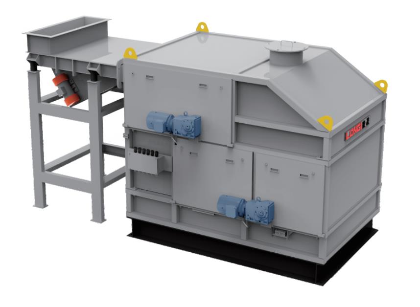 LQCG系列强磁干式除铁器是隆基公司针对粉体行业较粗粒级物料的除铁专用设备,适用于0.1mm~10mm粉 体物料,广泛应用于石英、长石、高岭土、萤石、耐火材料、陶瓷、玻璃等非金属物料的除铁提纯。设备结构紧凑 简便,采用2级强磁除铁结构设计,分选场强大于11000Gs。